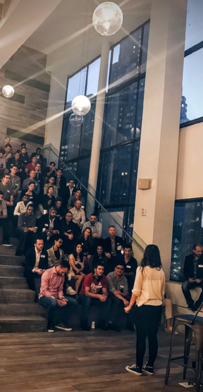 The New York Real Estate Startups Meetup held a networking and demo on Sept. 27, hosted and sponsored by COWORKRS at their brand new event space: The Mezzanine at 55 Broadway. More than 70 real estate professionals, entrepreneurs, engineers and investors attended. The event included demos by early stage RE Tech startups, as well as a keynote by Joe Charat, co-founder and GM of Naked Apartments (recently acquired by Zillow). Presenters included Ryan Freed, co-founder ofHoM; Julia Ramsey, co-founder of joinery; German Valencia, co-founder of FloorHacker, and James Ingallinera, co-founder of Founder House. Other highlights included a yoga breathing exercise led by the hOM team.